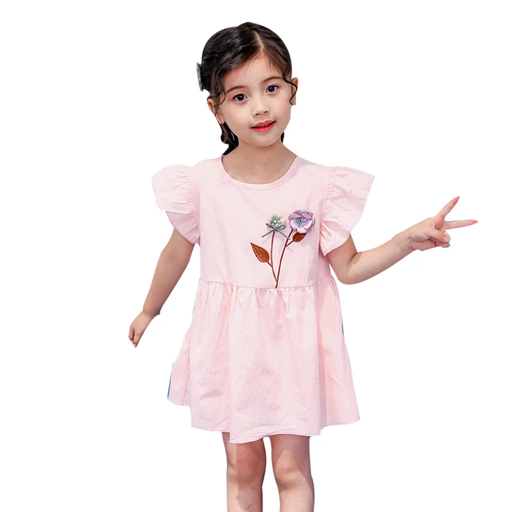 Платье с рюшами и цветочным рисунком для маленьких девочек; платья принцессы; одежда