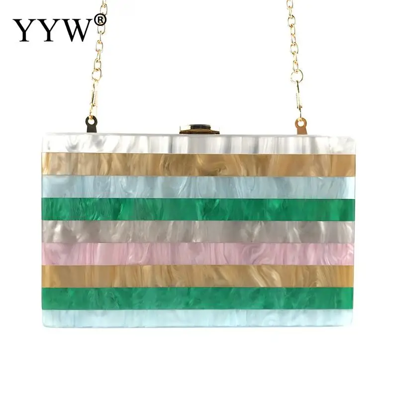 Акриловая твердая поверхность клатч, тибетские ювелирные изделия, с цепочкой и лаковой отделкой и прилагается с подвесным ремешком, прямоугольник, полосатый, много цветов на выбор, продается PC