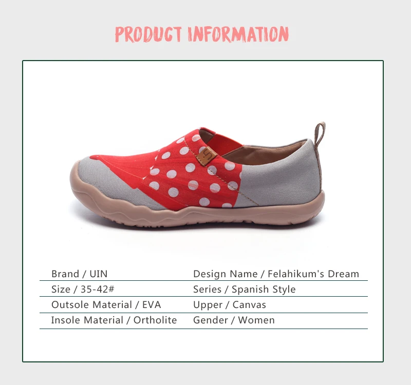 UIN-новейший оригинальный дизайн обуви. Мы настаиваем на простейшем стиле обуви, и большинство творчество и мода дизайн. Мы выбираем живопись, чтобы описать нашу идею на обуви, жизнь-это искусство-наша основная концепция. Надеюсь, мы сможем найти красоту мира вместе с UIN! Обувь UIN имеет привлекательный дизайн, произведенный художниками в Испании. Туфли выглядят так, как будто они были окрашены с помощью кисти художника и имеют разные цвета, что позволяет им легко согласовать все в вашем гардеробе. Окрашенная обувь UIN-это настоящий шедевр обуви, который позволит вам выглядеть шикарно и чувствовать себя комфортно, куда бы вы ни отправились.