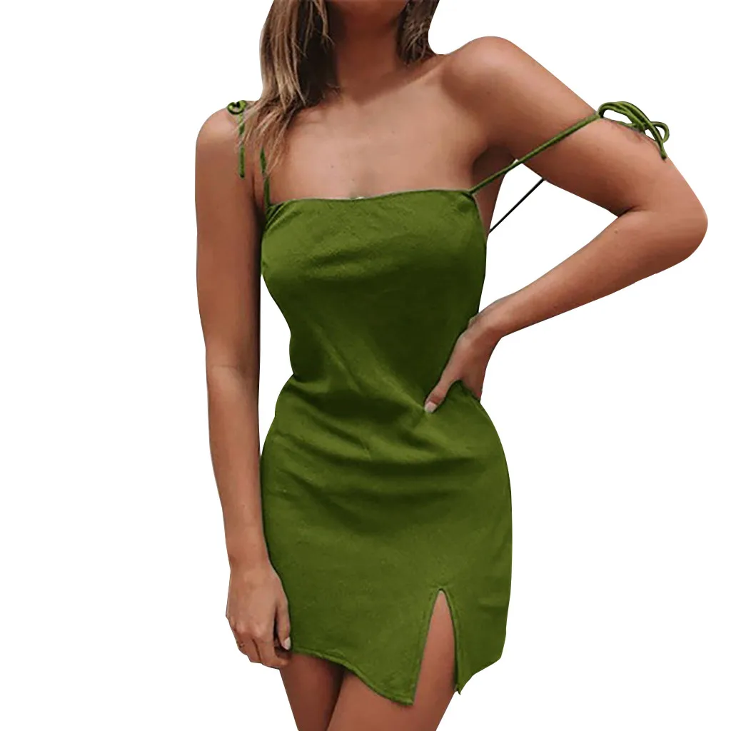 Женское летнее мини-платье без рукавов с v-образным вырезом