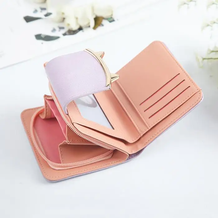 Женский кошелек из искусственной кожи с кошачьими ушками и кисточками, Короткие мини женские кошельки, кошелек для денег, кредитные карты, MSJ99