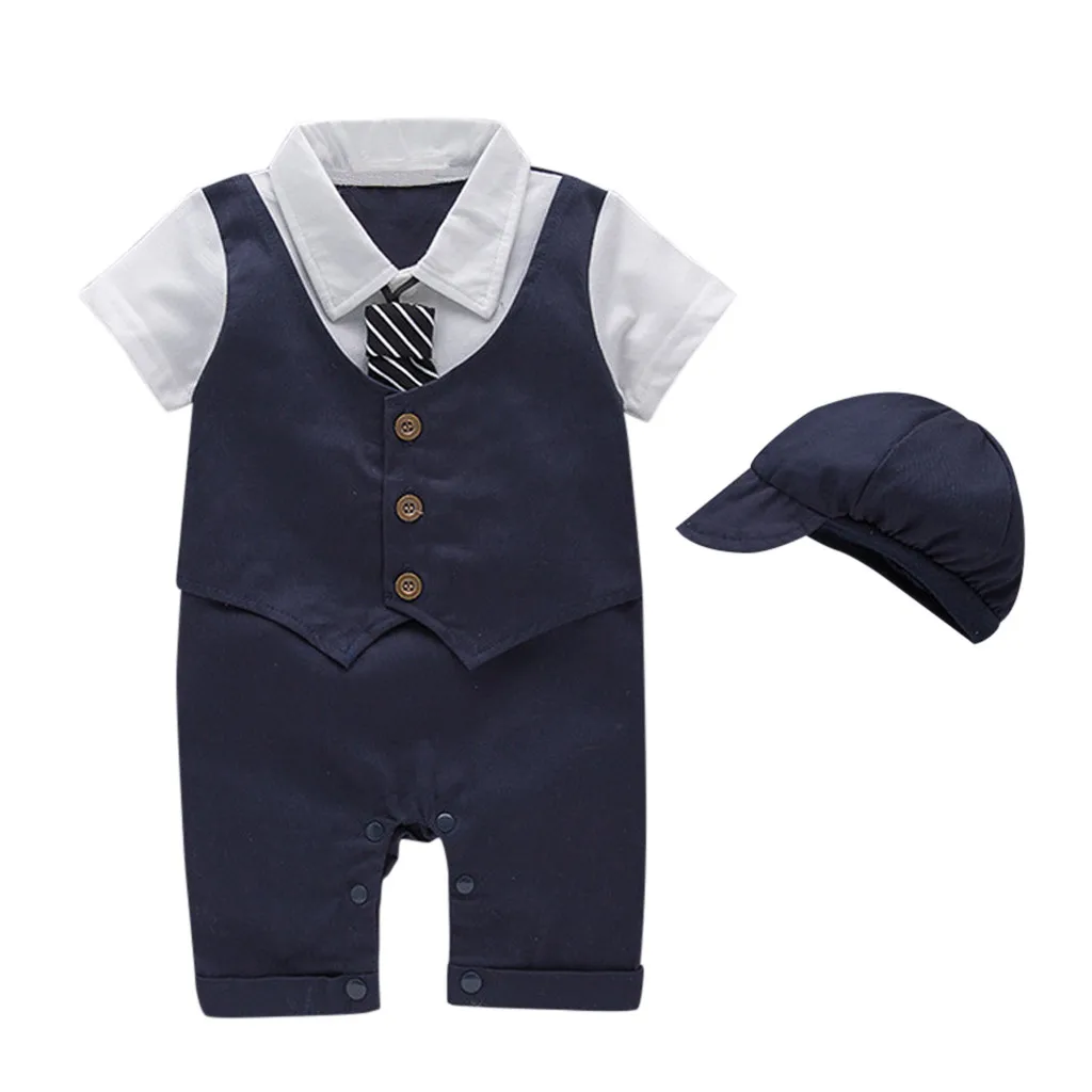 Children's gentleman's suit Infant Baby Short Sleeve Gentleman Romper Solid Print Jumpsuit +Hat boys clothes children clothes#06