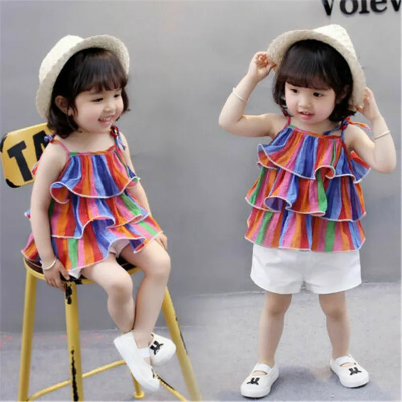 Купите это для ваших милых девочек в качестве подарка на день рождения, она должна быть красивым ангелом в мире :) Новейшая модная летняя одежда для маленьких девочек; комплект из 2 предметов! Высокое качество и абсолютно новый 100% Основной цвет: как на картинке Новинка в моде Материал: смесь хлопкаОбратите внимание: если ваш ребенок пухленький, мы рекомендуем выбрать больший размер, спасибо. Пожалуйста, перед покупкой ознакомьтесь с фактическим ростом вашего ребенка и таблицей размеров. Спасибо. В комплект входит:1 жилет +1 шорты Таблица размеров: