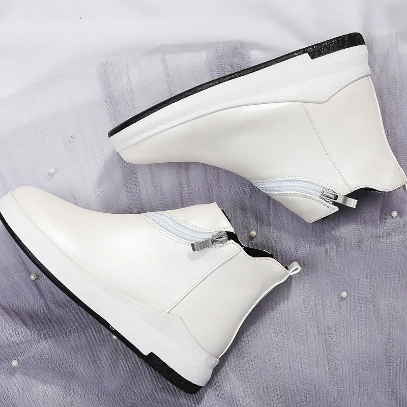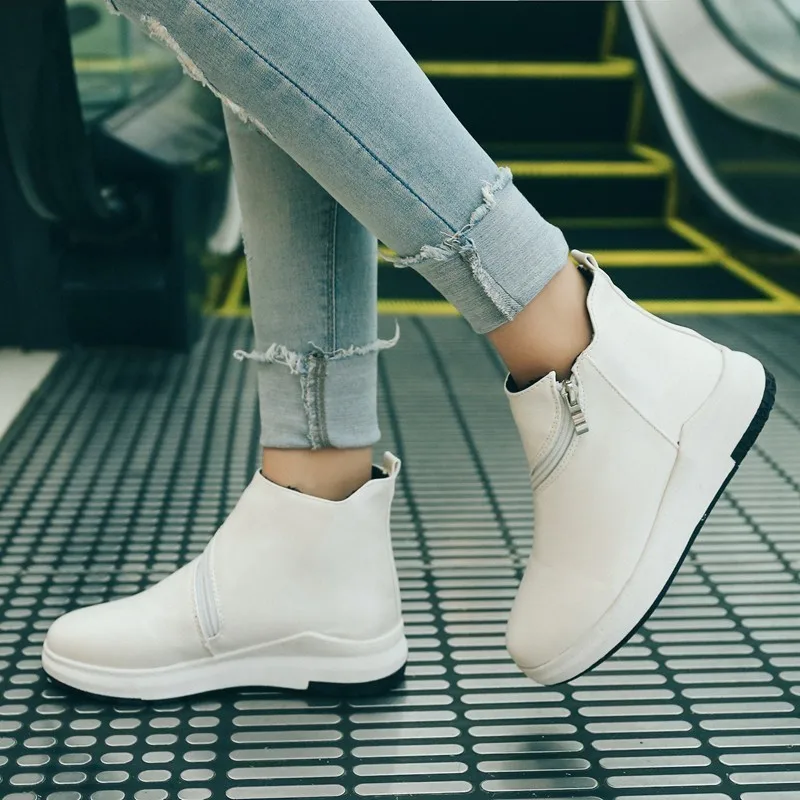 Ботильоны из искусственной кожи на платформе; новые женские полусапожки с круглым носком; сезон осень-зима; Модные женские ботильоны на молнии; цвет черный, белый; E075