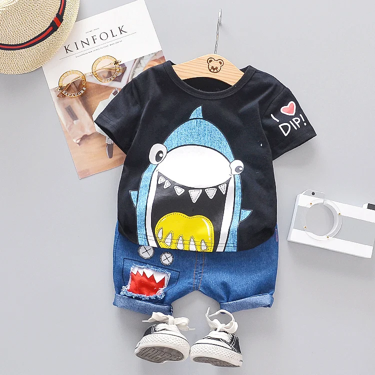Лето 2019, модные комплекты одежды для малышей, футболка с рисунком, шорты, одежда для маленьких девочек и мальчиков, костюмы, Детский костюм, детская спортивная одежда для От 0 до 4 лет