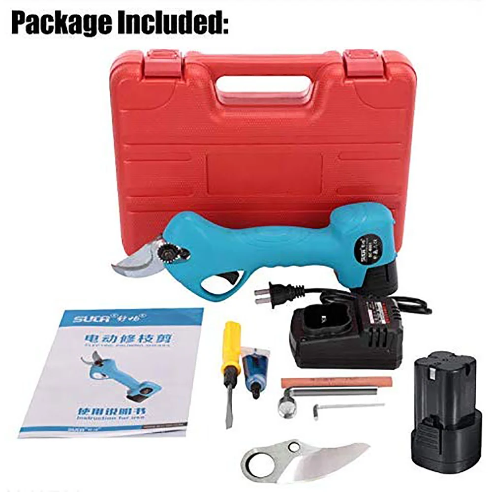 Параметры электрической обрезки: 1. Максимальный диаметр сдвига: 25 мм. Размер отверстия 2,5 см 2. Мощность: 400 Вт 3. Вес ножниц: 0,94 кг 4. Литиевая батарея: 16.8V2Ah 5. Время использования: 2-3 часа Что вы получаете: -1 беспроводной секатор -1x замена лезвия -1x зарядный адаптер -2x ключи -1x руководство по эксплуатации uer (Без батареи) Набор инструментов и случайные документы Характеристики электрических ножниц для фруктовых веток: 1. Не шлифовальные лезвия, изготовлены из вольфрамовой стали, прочные. 2. Низкий уровень шума, хорошая устойчивость к усталости, непрерывная работа 2-3 часа в сутки 3. Он может быть широко использован во всех видах фруктовых садовых производственных площадей. 4. Снижение трудоемкости рабочих в производстве (с использованием ножниц) также является новой мерой для укрепления охраны труда. 5. Электрические ножницы работают эффективно, тем самым уменьшая количество рабочих и производственные затраты. 6. Гибкий в использовании, легко поворачивается, безопасен и надежен, прост в обслуживании и прост в замене лезвий.