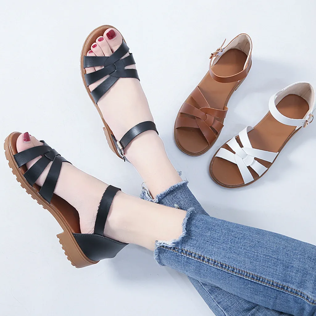 Летние женские сандалии в римском стиле; сандалии с ремнем и заклепками; обувь с открытым носком