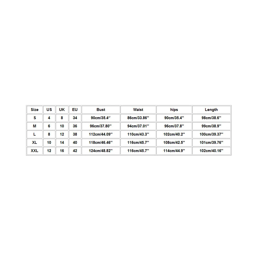 | Размер: XXL | США: 12 | Великобритания: 16 | ЕС: 42 | Обхват груди: 124 см/48,82 дюйма | Талия: 116 см/45,7 дюйма | Бедра: 114 см/44,9 дюйма | Длина: 102 см/40,16'' |