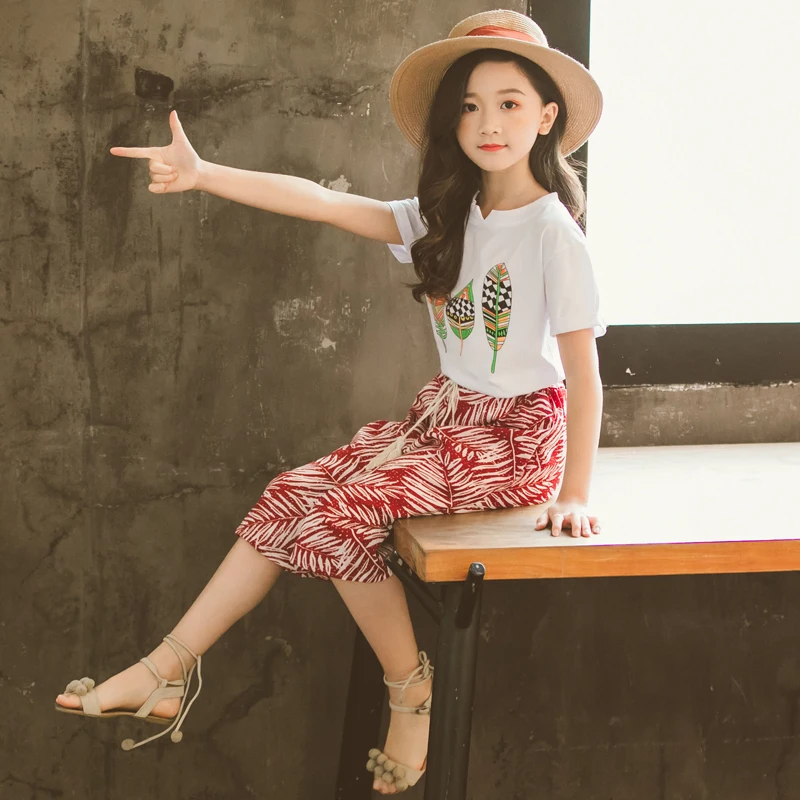Комплект повседневной одежды для девочек, модные детские комплекты Осенняя Девичья одежда хлопковая Детская одежда Одежда для девочек-подростков одежда с принтом для подростков