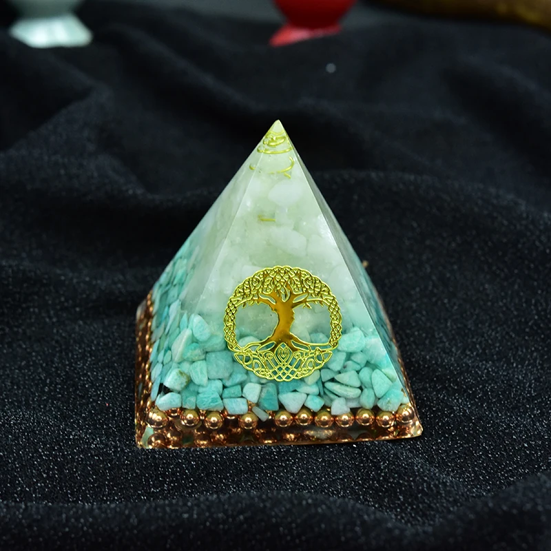 AURAREIKI Orgonite Пирамида Raziel visuddha чакра белый кристалл Амазонит Смола украшения вера творчество Пирамида