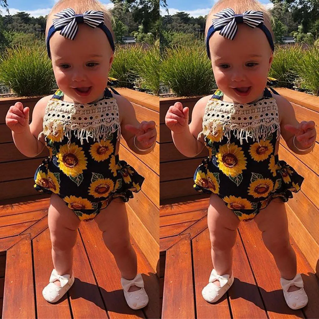 Топы с кисточками и цветочным принтом для маленьких девочек; боди; комбинезон; одежда
