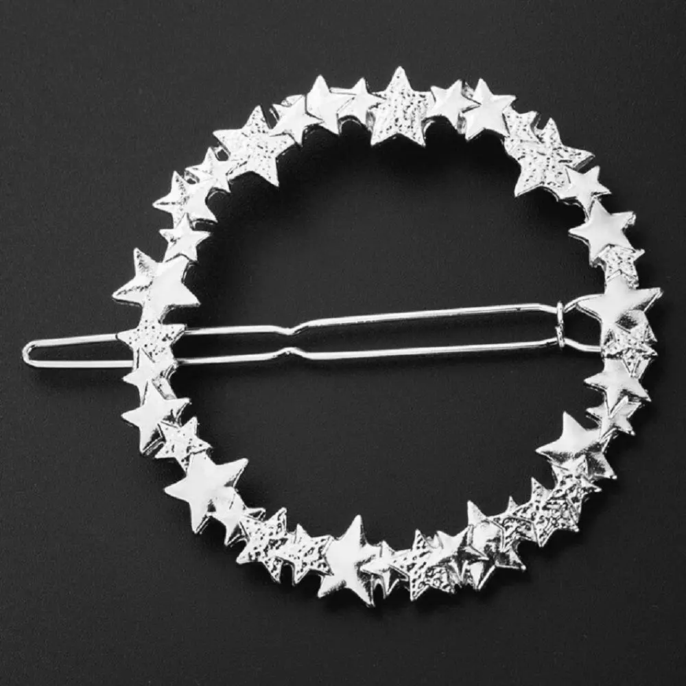 100% новый Высокое качество Стиль: Модный Тип: одежда для волос Форма: звезда, кольцо Материал: сплав Размеры: 2,36 "/6 см Цвет: золотой, серебряный