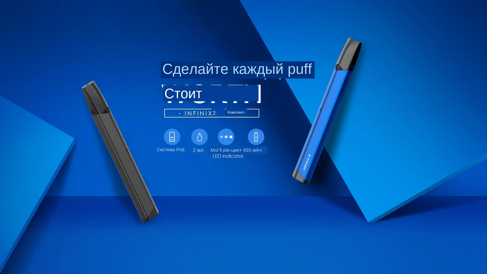 Представляем вам абсолютно новый набор IINFINIX 2! Он состоит из 1 INIFINIX и 2 драйверов для подачи воздуха в колбы. Кроме того, емкость колб составляет 2 мл, вы можете заполнить их любой жидкостью для электронных сигарет. Глянцевый вид и компактный размер электронной сигареты позволяют взять ее с собой куда угодно. Встроенный аккумулятор на 450 мАч обеспечивает длительную работу для продолжительного курения.