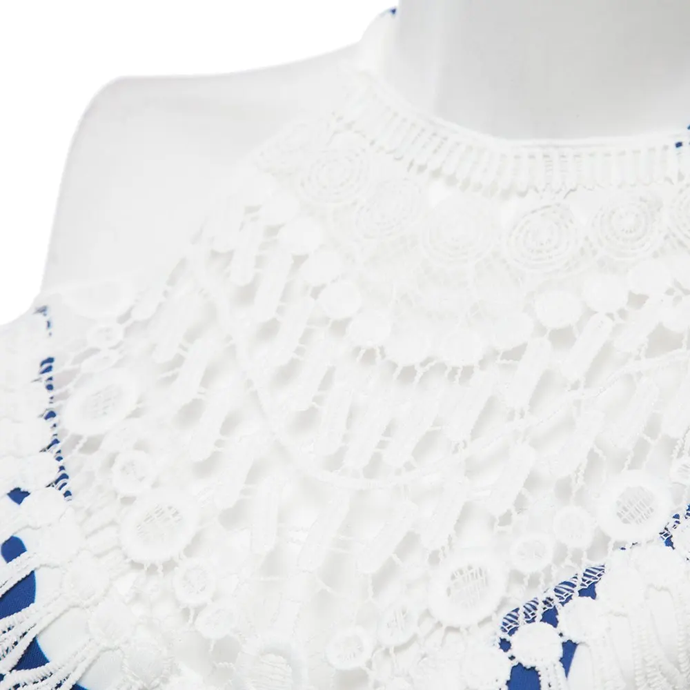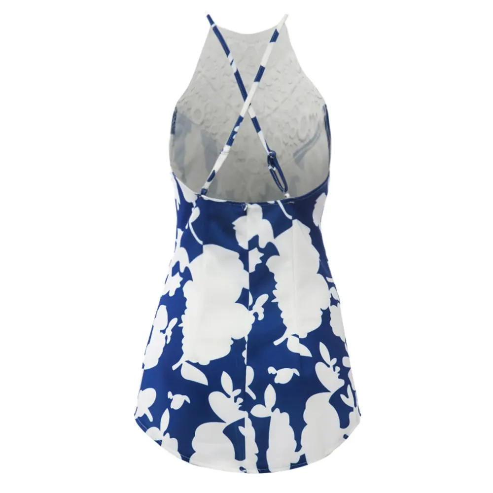 Сексуальное кружевное платье с лямкой на шее, без рукавов, с открытой спиной, синее шифоновое платье с цветочным рисунком, женское летнее Мини-пляжное платье, сарафан, Vestidos