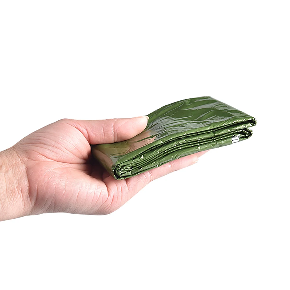 Этот спальный мешок отличается алюминированным полиэтиленовым материалом и хорошо заметным зеленым цветом, очень полезен в экстренных ситуациях на открытом воздухе. Он легкий и удобный для переноски, необходимое снаряжение для кемперов, туристов, туристов.
