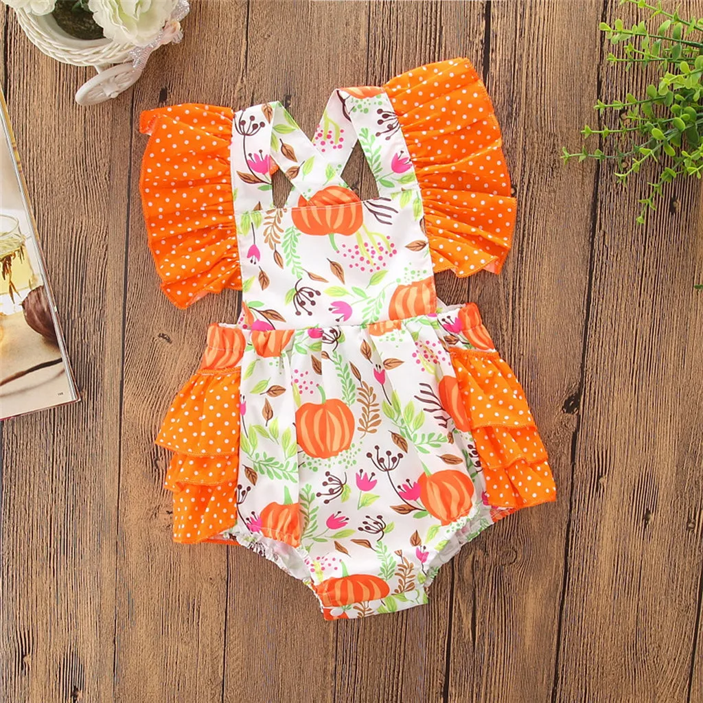 Infant Toddler Baby Ruffles Floral Polka Dot Pumpkin Printed Romper Outfits