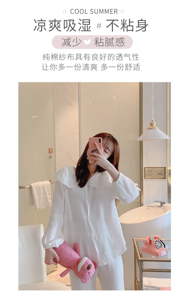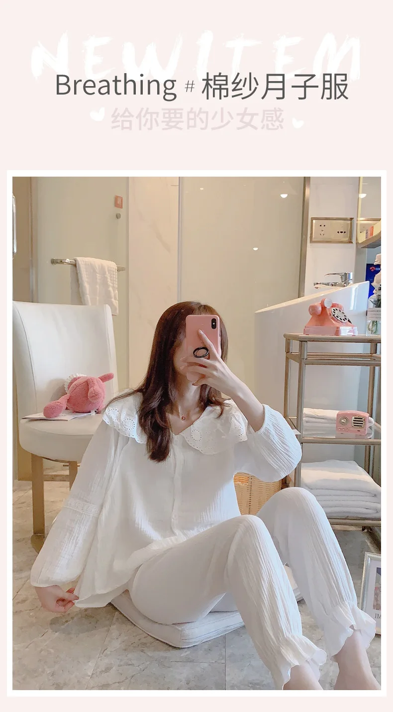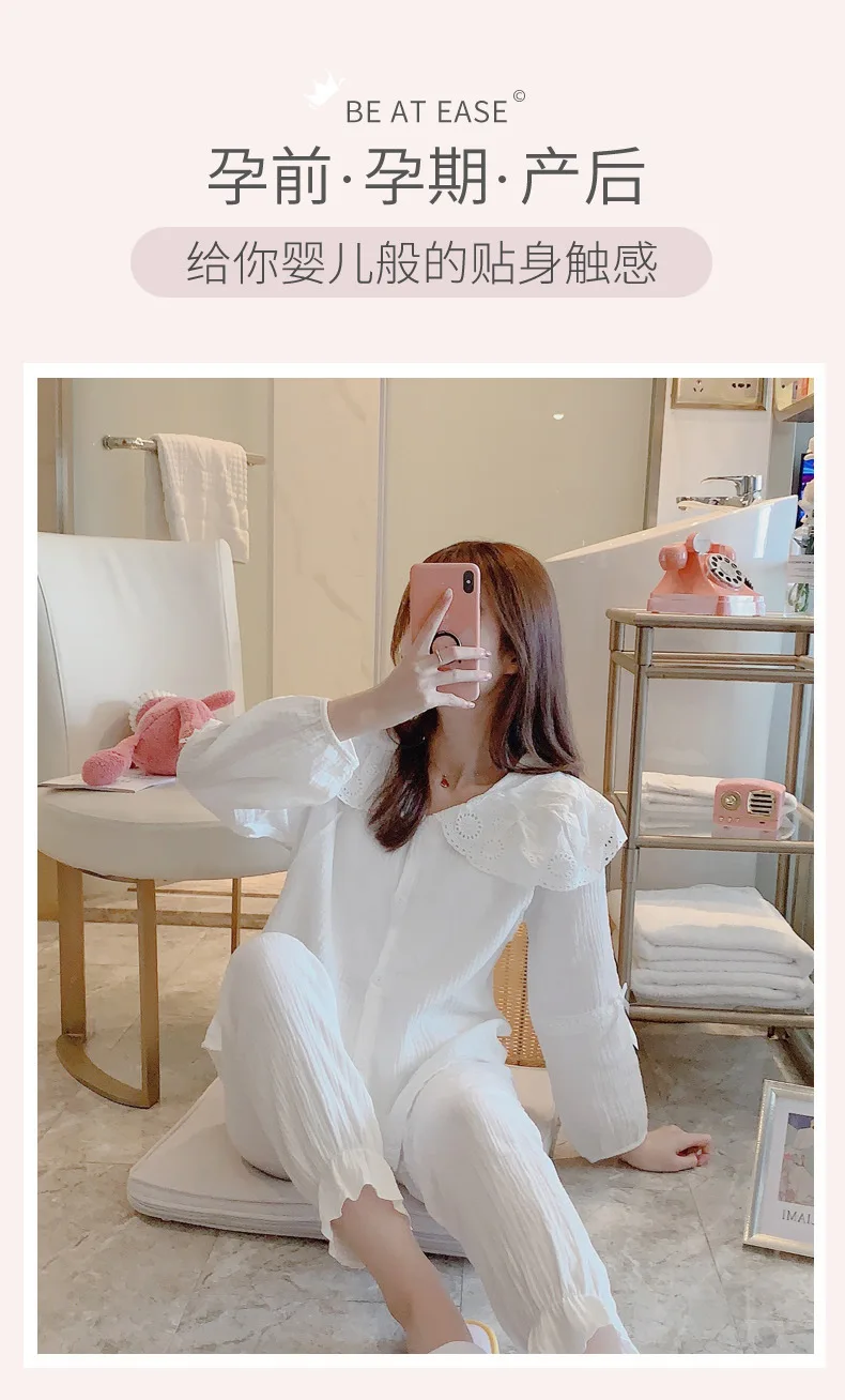 Летняя Новинка Одежда для беременных кормящих женщин 100% хлопок Промытые марлевые пижамы мягкие пижамы для грудного вскармливания костюм для мамы