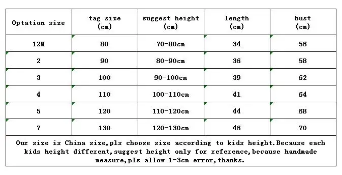 Перед заказом, пожалуйста, внимательно проверьте таблицу размеров, наш размер-китайский размер, пожалуйста, выберите размер в соответствии с ростом и весом ребенка. Если вес высокий, пожалуйста, выберите больший размер. Из-за измерения вручную допускается погрешность в 1-3 см.