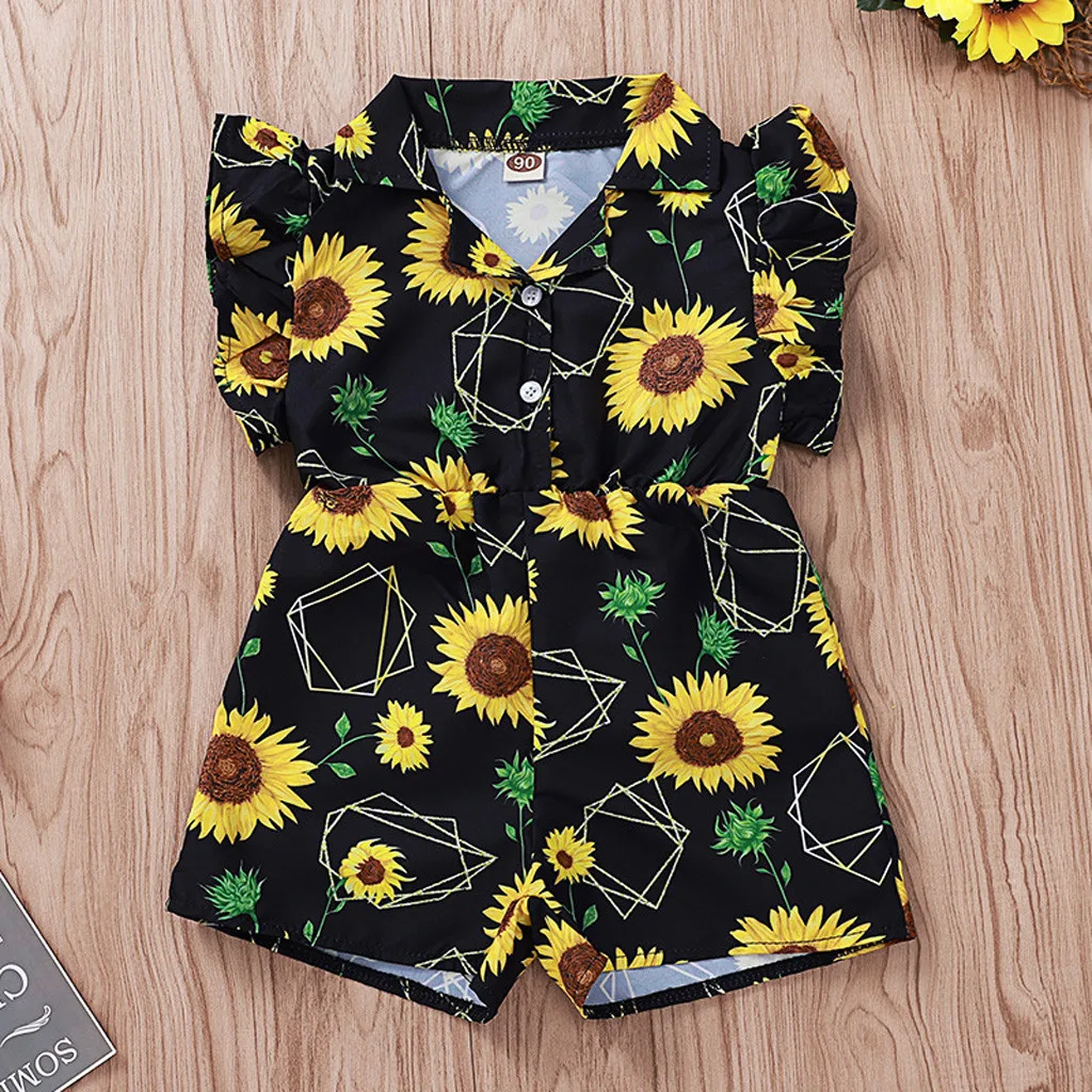 Комбинезон с оборками и принтом подсолнуха для маленьких девочек; комбинезон; костюм для девочек