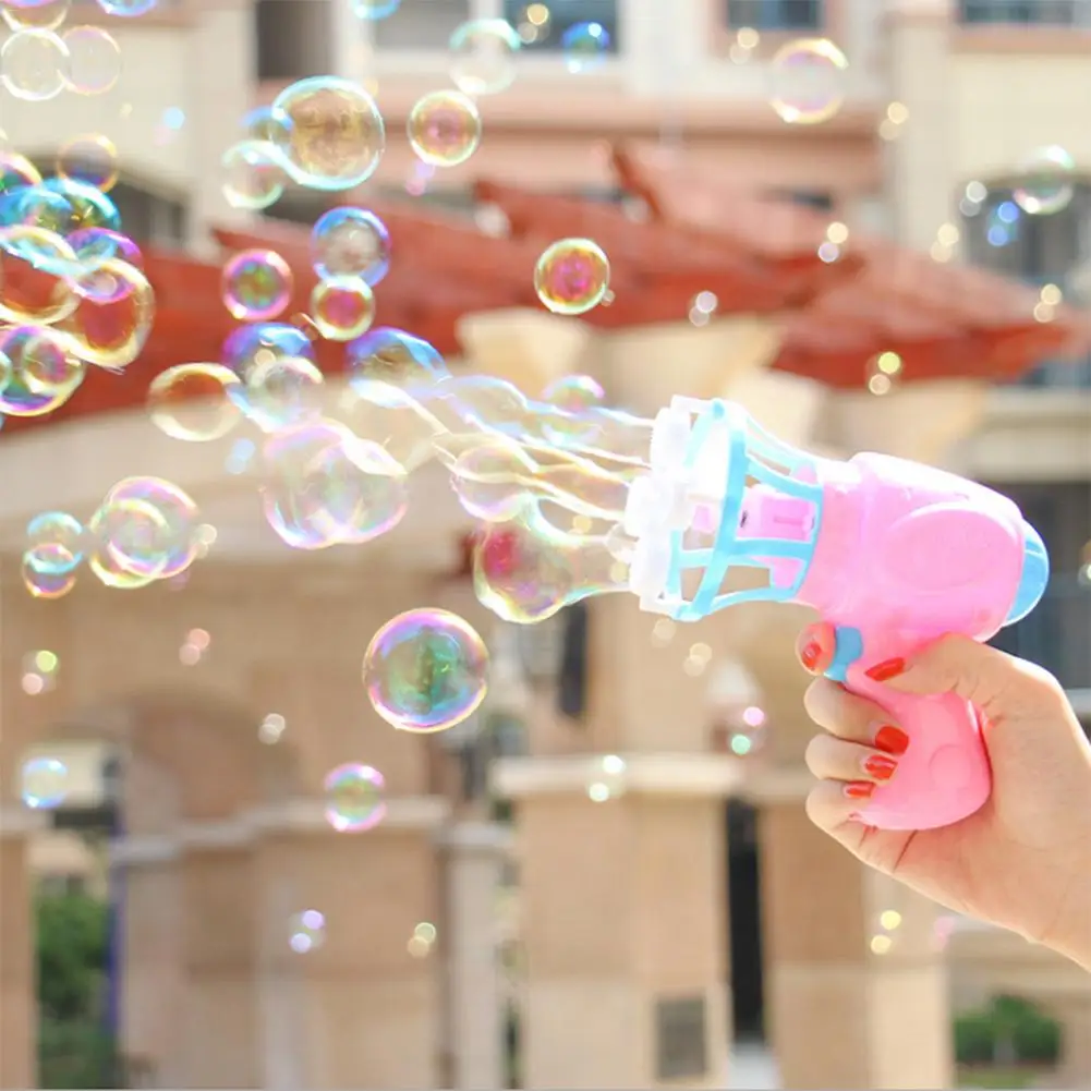 Изготовлен из мягкого материала, пузырьковый пистолет веер кусок гладкий и отполированный без края шипов. Вы можете сделать пузырь одним щелчком, а не использовать рот, чтобы дуть. Дети развлекаются, и родители могут быть уверены.