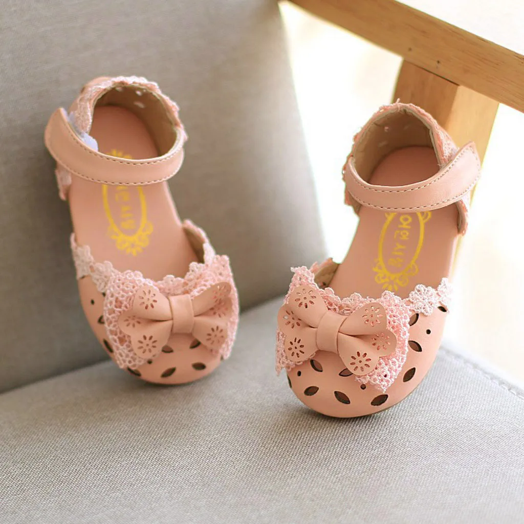Одежда для маленьких девочек Элегантные босоножки принцессы с цветочным принтом и бантом