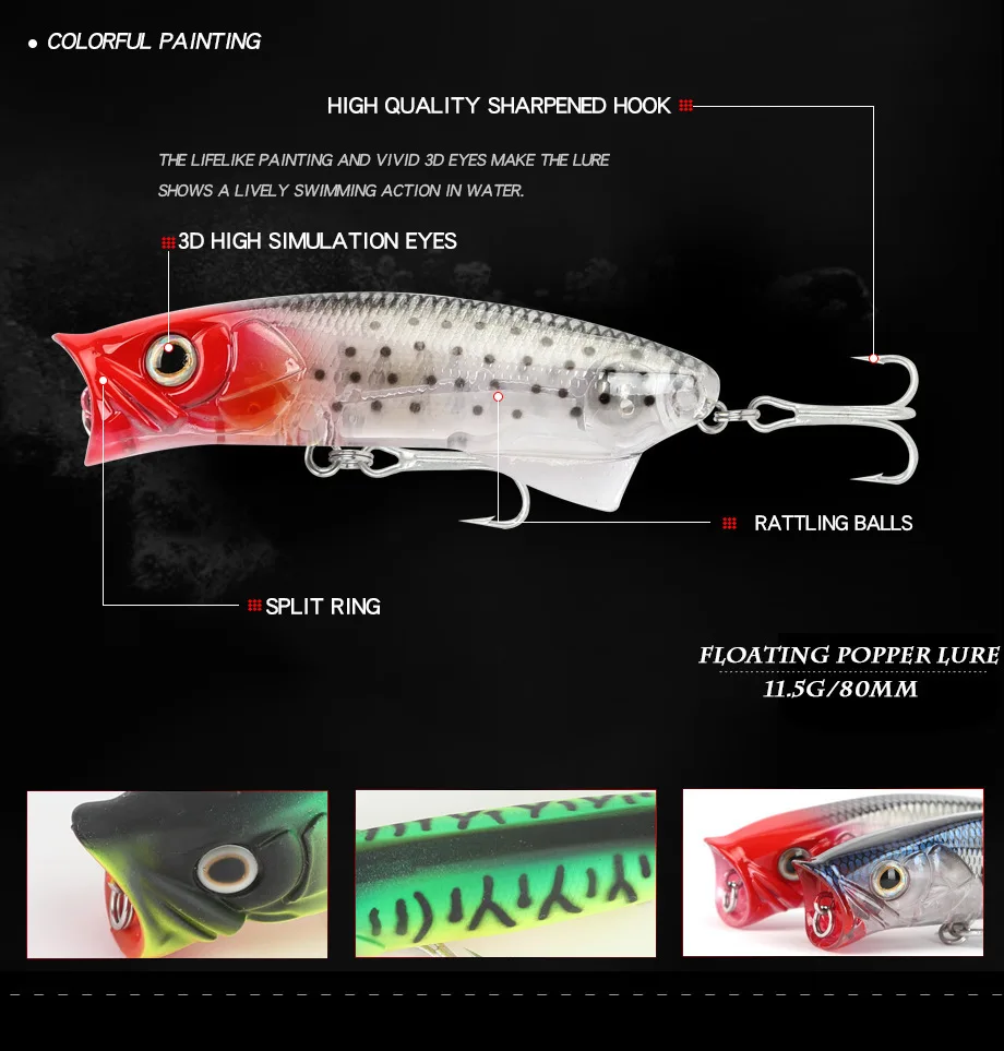 Популярный Поппер приманки 8 см 11,5 г рыболовные приманки воблеры лодочный поплавок плавающая приманка искусственная жесткая приманка рыболовные снасти