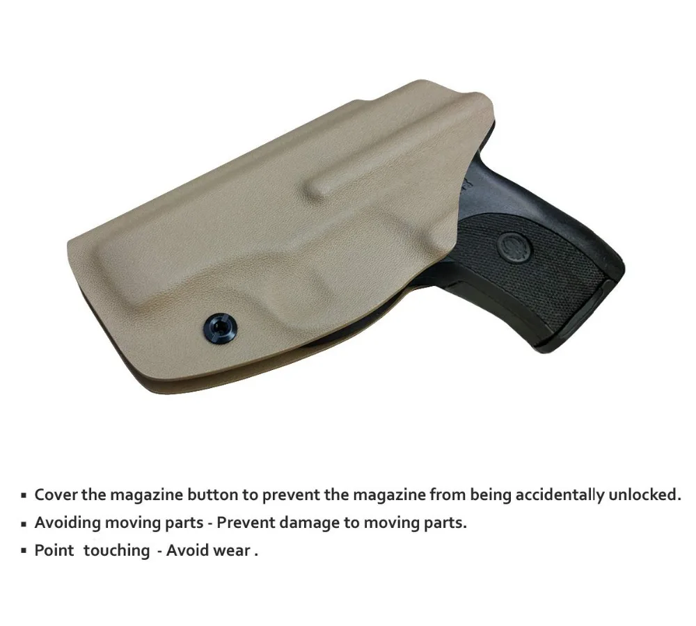 US .08 ”KYDEX ручная работа: легкий, прочный, прочный, влагостойкий, моющийся, обеспечивает комфорт и уверенность в любой ситуации. Кобура охватывает весь корпус, эффективно предотвращая пот и избегая зажимов, можно безопасно и безопасно использовать одежду.