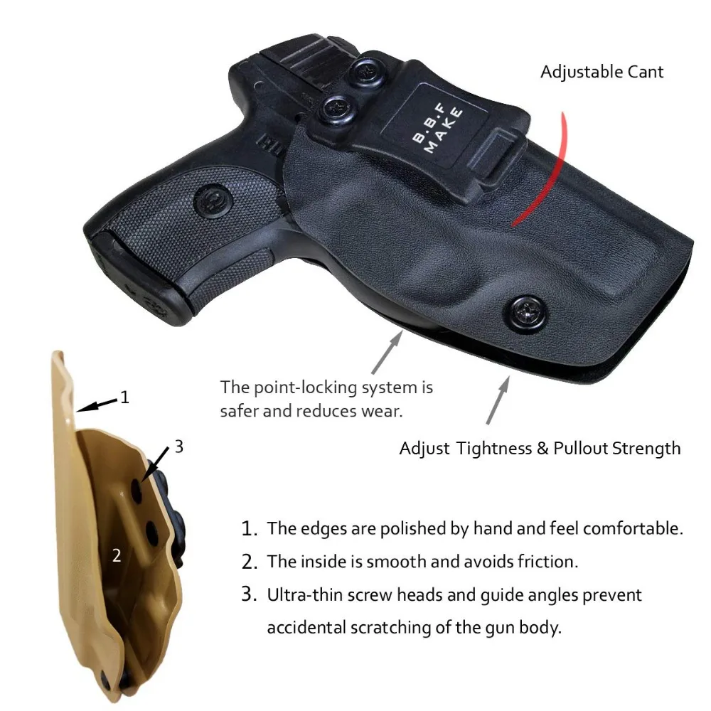 Пожизненная гарантия: мы уверенно предлагаем пожизненную гарантию, которая дает вам душевное спокойствие при выборе BBF Make IWB KYDEX кобуры. Если наша продукция не работает, как обещано, пожалуйста, верните замену или полный возврат средств.