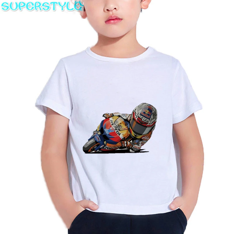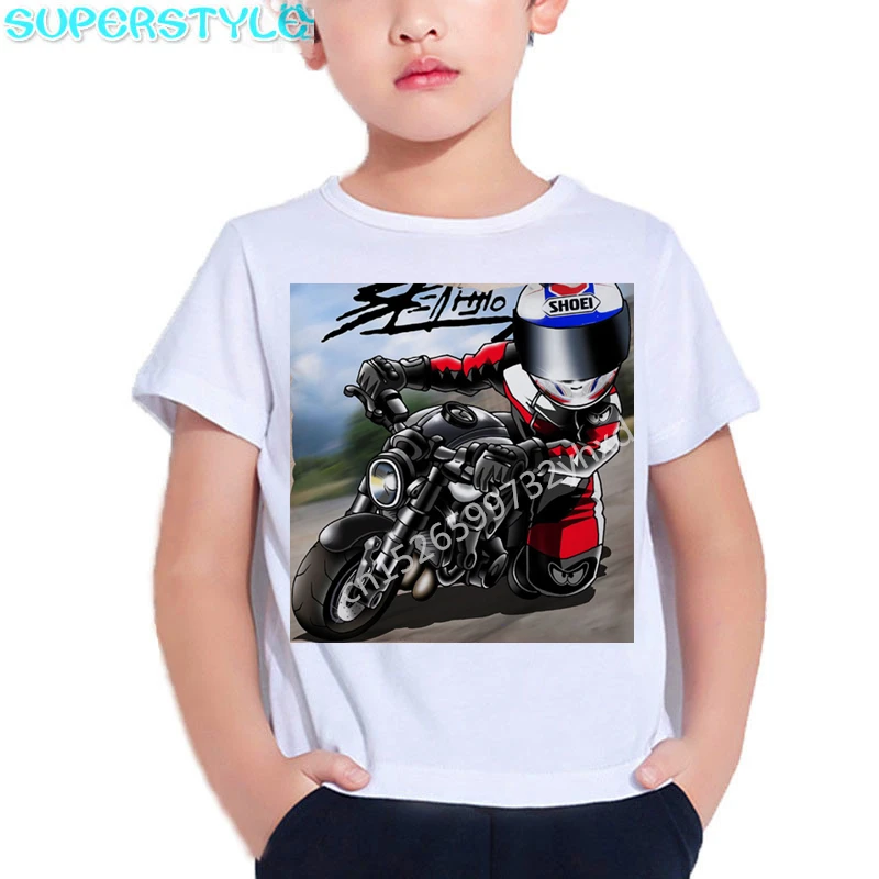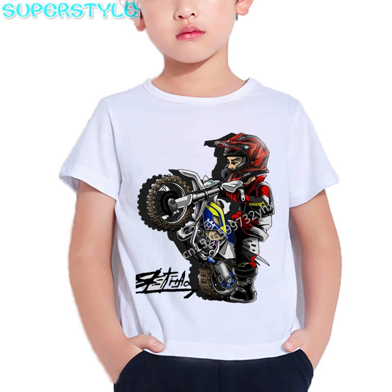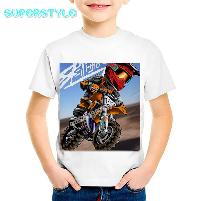 2021 г. Летние детские футболки с рисунком мотоцикла, экстремальные виды спорта, детские белые топы с короткими рукавами, одежда для мальчиков с изображением мобильного велосипеда dHKP501