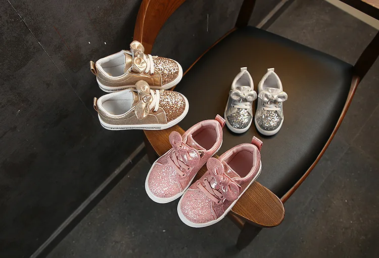 Kids Shoes For Girl Sneakers Toddler Children Casual Shoes Bow-knot Glitter Leather Baby Girls Princess Shoes Pink Spring Autumn