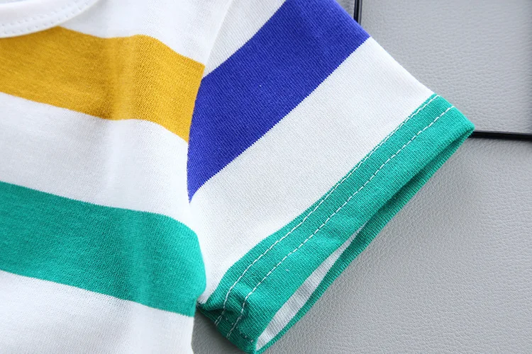 Летний модный костюм для маленьких мальчиков и девочек; Новая детская хлопковая Футболка; Комбинезон; 2 шт./компл.; Спортивный костюм для малышей; Детские спортивные костюмыДля детей 0-4 лет
