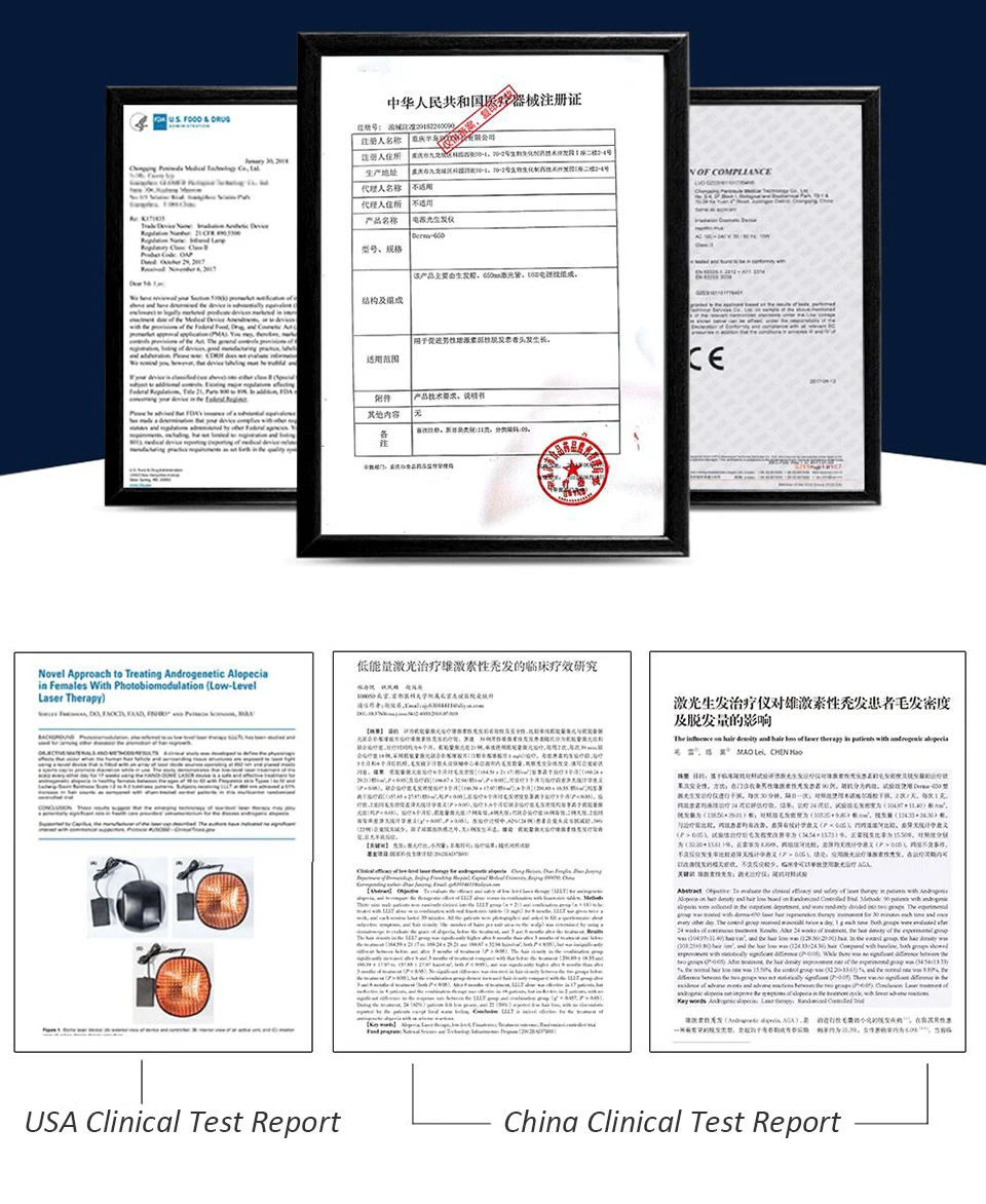 2. Длительный эффект: 670нм низкоэнергетическая холодная лазерная терапия может расширить кровеносные сосуды, способствует циркуляции крови, обеспечивает достаточную поставку питательных веществ волосяным фолликулам, облегчает передачу питательных веществ, И сделать терапевтическое воздействие активации волос, выращивания волос и укрепления волос на голове более длительным.