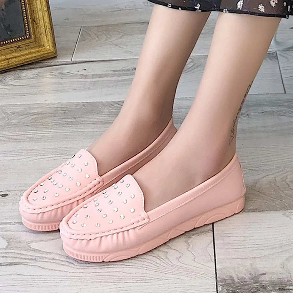 Женские однотонные повседневные лоферы на плоской подошве с круглым носком, украшенные кристаллами; Водонепроницаемые Мокасины