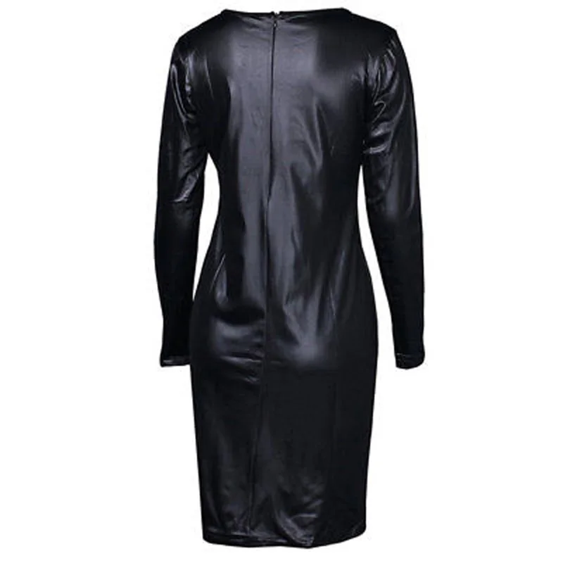 * Описание товара: женские кожаные Клубные бодикон мокрого вида с длинным рукавом карандаш стрейч вечерние платья