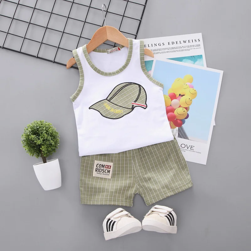 Новый летний костюм для маленьких мальчиков Детский хлопковый жилет и шорты Повседневный костюм для маленьких девочек из 2 предметов Одежда для младенцев детский спортивный костюм для От 0 до 4 лет