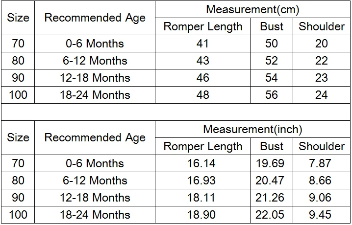 Новые модные комбинезоны для новорожденных девочек! Высокое качество и абсолютно новый 100% Основной цвет: как на картинке Новинка в моде Материал: хлопокОбратите внимание: если ваш ребенок пухленький, мы рекомендуем выбрать больший размер, спасибо. Просим перепроверять размеры детей, рост и полноту по размерной таблице перед покупкой/подачей заявки. Спасибо за понимание. Посылка включает в себя: 1 комбинезон Размеры таблицей: