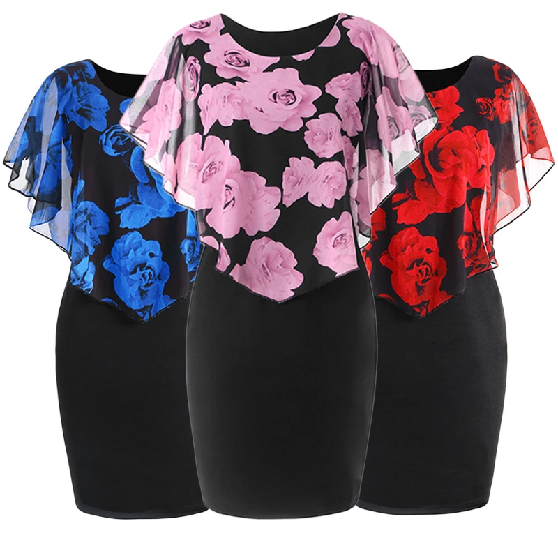 * Описание товара:Для женщинНовая модная повседневная одежда с круглым вырезом и цветочным узоромВечерние Платье-футляр