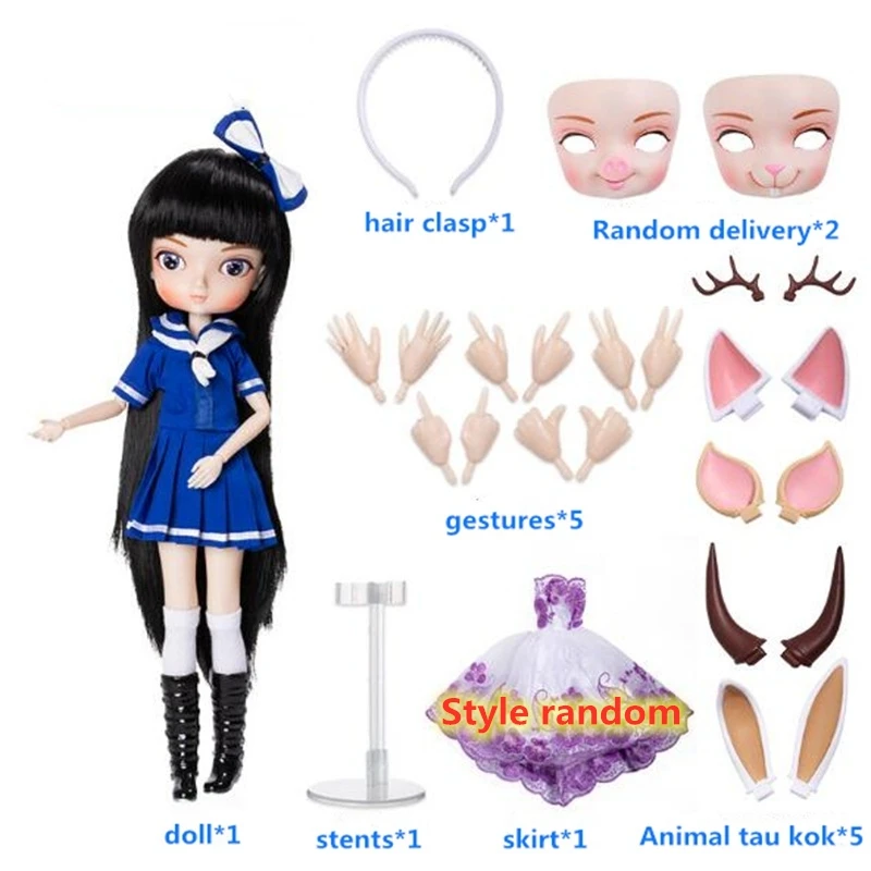 Название: модная Кукла Размер: 35 см Вес: 0,4 кг Упаковка: упакована в полиэтиленовый пакет Товары включают: Кукла: как показано Одежда: как показано Парик Обувь Специальная поддержка Модель жестов Функции: 1. Зрачки для глаз имеют несколько цветов и могут быть переключены. 2. Вы можете изменить свой макияж по желанию. 3. Можно настроить DIY, чтобы изменить одежду и парики. 4 и 14 сферических соединений можно разместить в любом положении