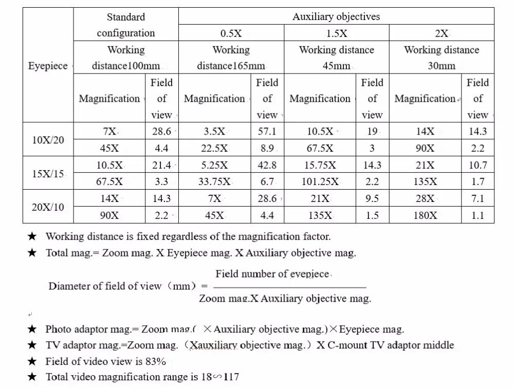 Посылка включает в себя:1 x головка с зумом в виде бинокля1 x пара супер Widefield 10X окуляров1 x стойка для стола1 x стойка для фокусировки1 пара защитных очковЗащитное стекло-1 шт.Пылезащитный чехол-1 шт.Настольная подставка-1 шт.1 x Универсальная наклейка1x144 Светодиодных Колец1x тепловой коврик1 объектив 0,5x1 объектив 2.0X1x адаптер CTV1/2