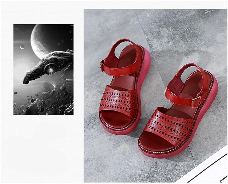 Женские босоножки; Коллекция 2019 года; Сандалии ручной работы из натуральной кожи с открытым носком в стиле ретро; Женские повседневные модные сандалии на платформе