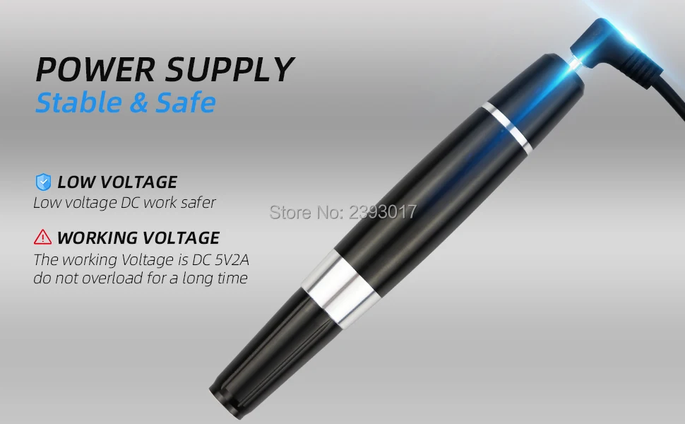 Материал ручки: алюминий и нержавеющая сталь. Скорость работы: 11000 об/мин-38000 об/мин Рабочая Напряжение: Вход: 100 - 240 В, подходит для использования по всему миру. Выход: 3,6 ~ 6,9 V Рабочий ток: 73 ~ 125 мА Цвет панели: черный