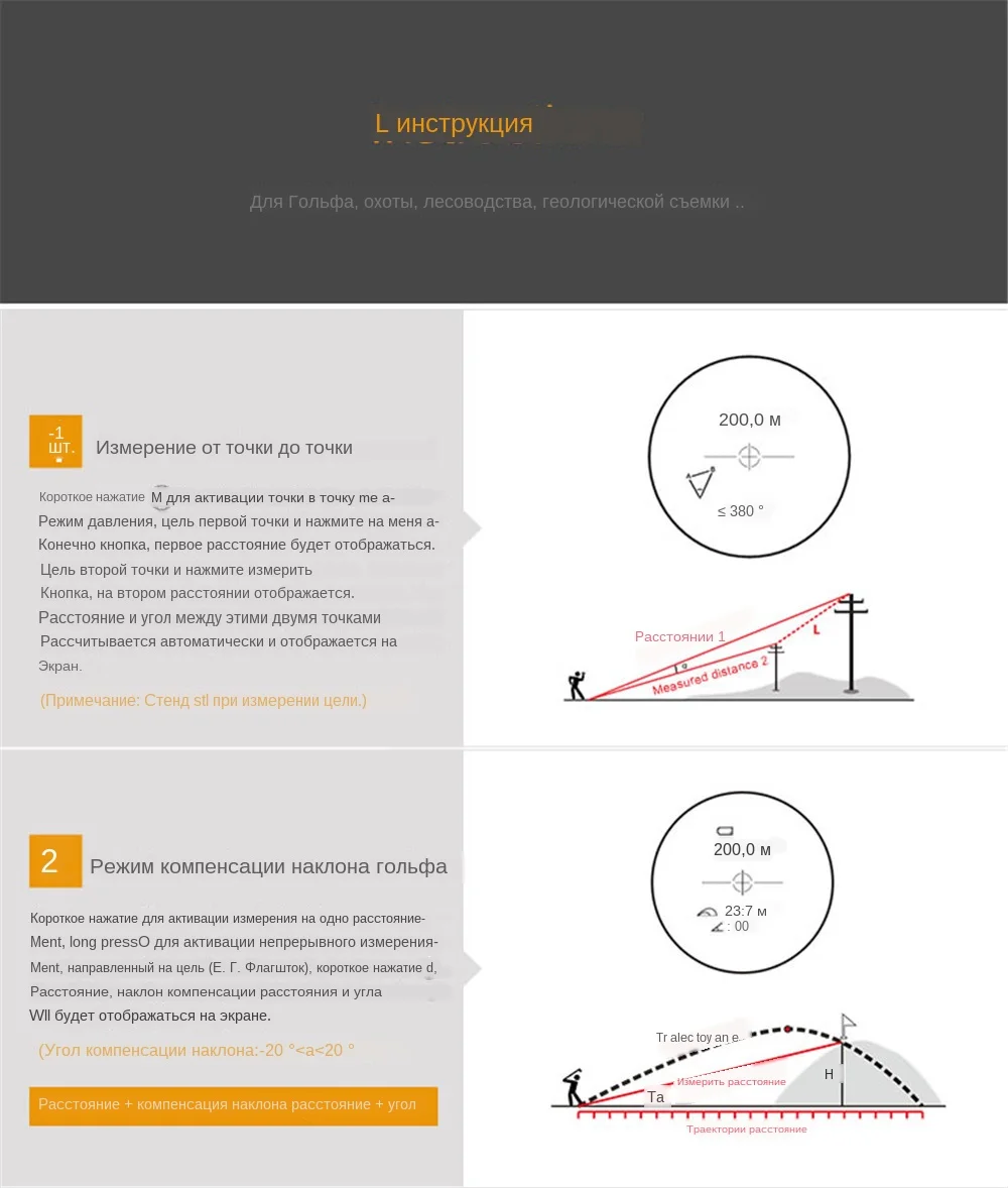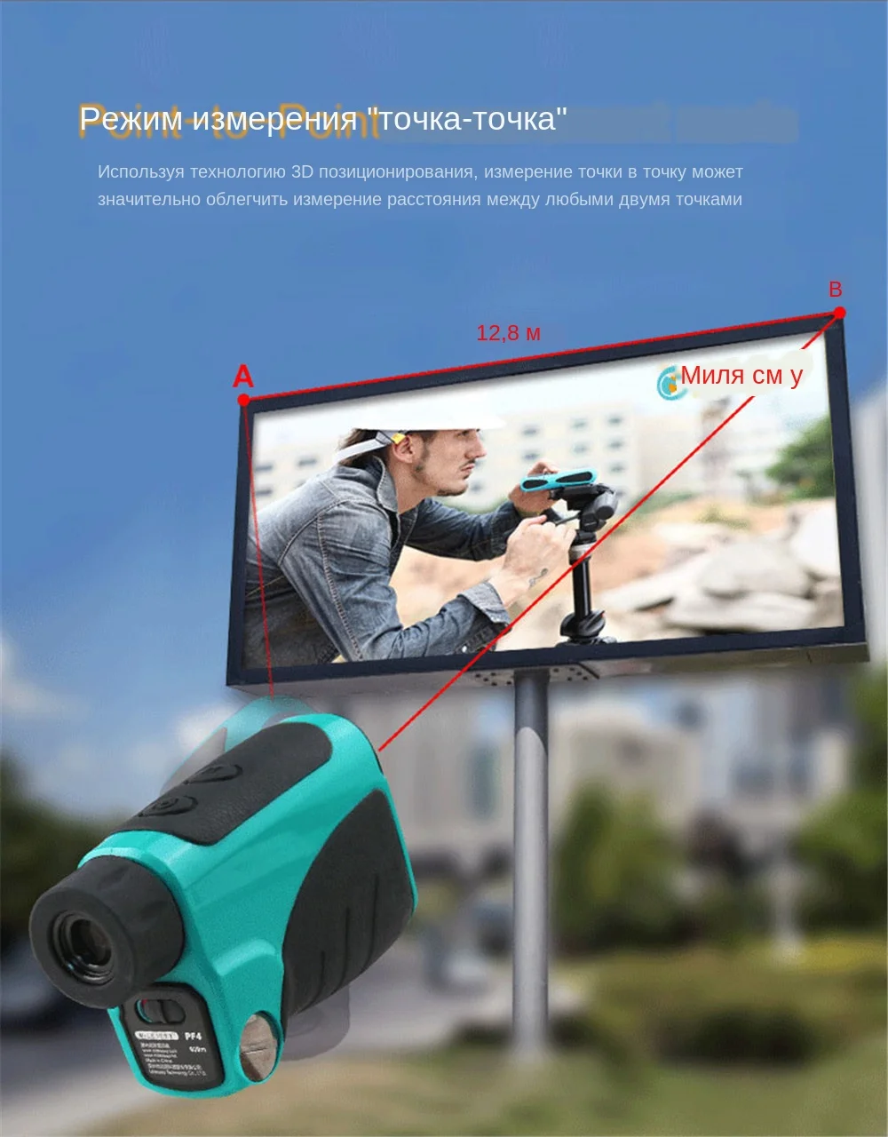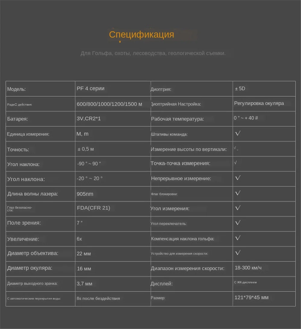 Название бренда: MiLESEEY Тип питания: аккумулятор Точность измерения источника питания: +-0,5 м Модель: Mileseey PF04 лазерный дальномер Размер: 121*79*45 мм Диапазон угла:-90 ---- + 90 градусов Длина волны лазера: 90 нм