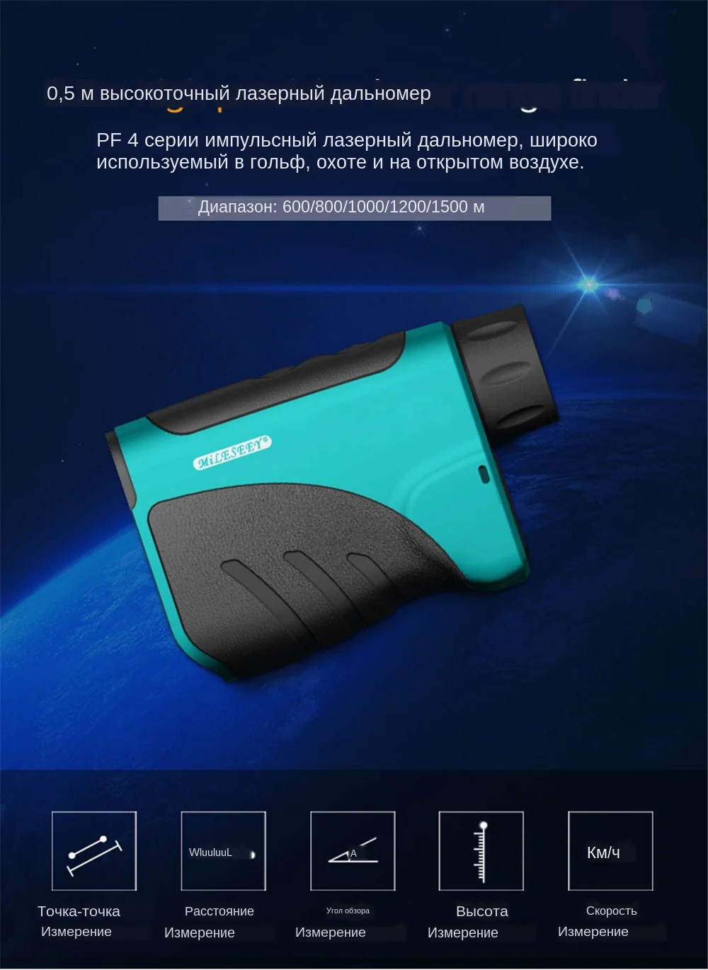 Mileseey 600 м 1000 м 1500 м Гольф Лазерный дальномер Наклонный Телескопический дальномер для охоты