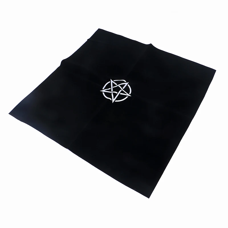 Специальная скатерть ТароРазмер: 50*50 смМатериал:Высококачественная флокированная тканьУпаковка:Opp мешокЦвет:ЧерныйОписание: Бесконечный цикл потока энергии в пятиконечную звездуОсобенности:Постепенно материал-светильник, мягкий, защищает карту от повреждений и легко переносится.Использование объектов: энтузиасты Таро, вожатые, волшебники.