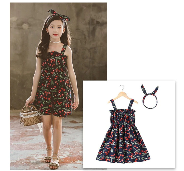 Шифоновая пляжная одежда с рюшами для подростков, жилет с вырезом на спине для больших девочек 4-14 лет, платье с повязка с цветами, летние платья с принтом