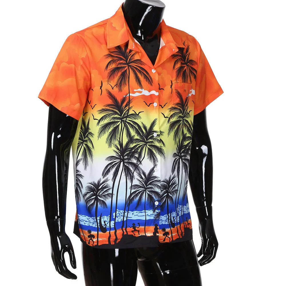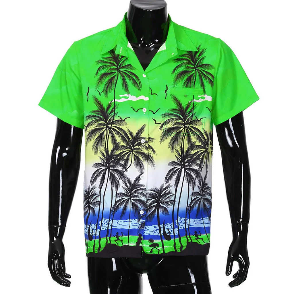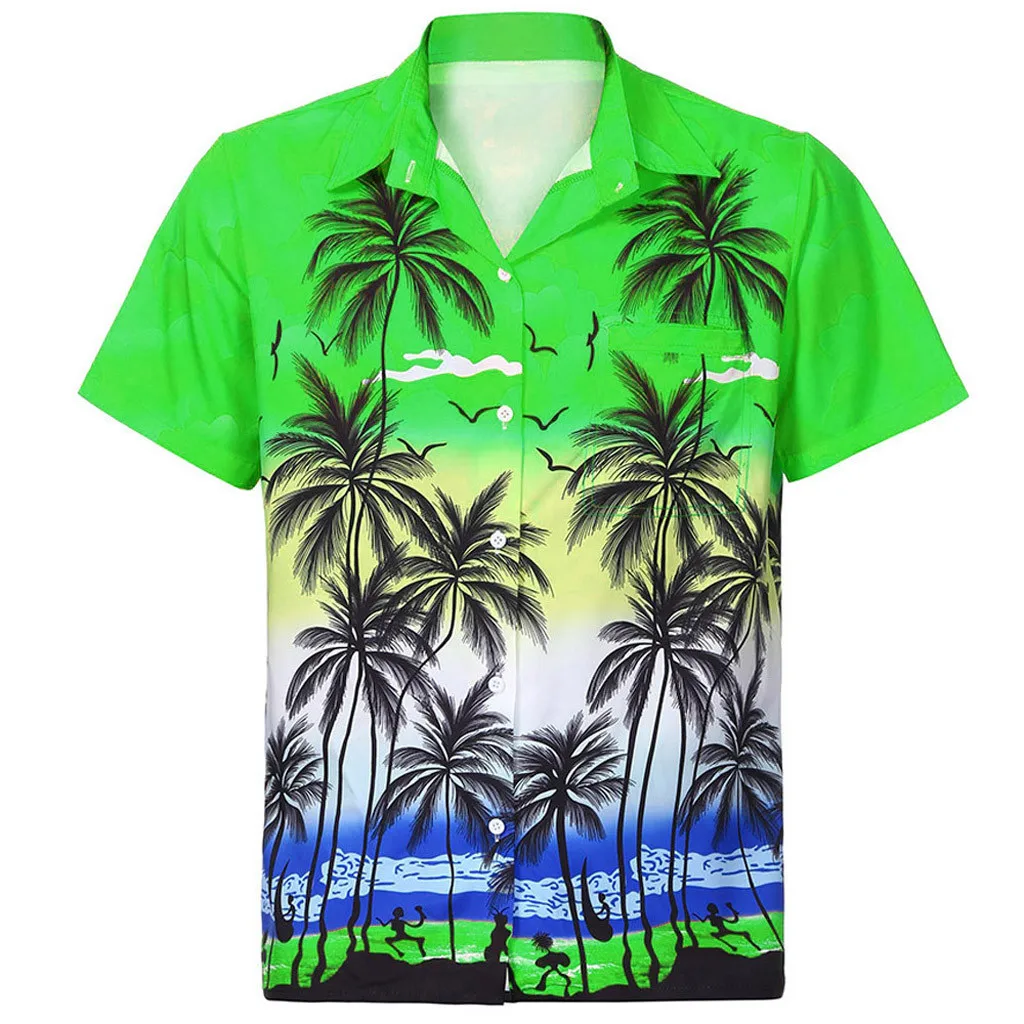 Женская гавайская рубашка с коротким рукавом и передним карманом, Пляжная блузка с цветочным принтом, топ-футболка