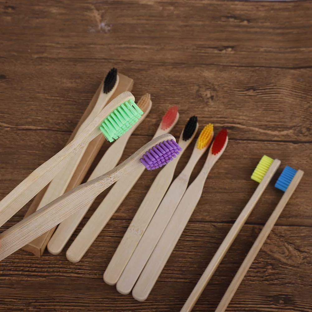 Новая комбинация 50 упаковок экологичных многоцветных бамбуковых зубных щеток для детей.