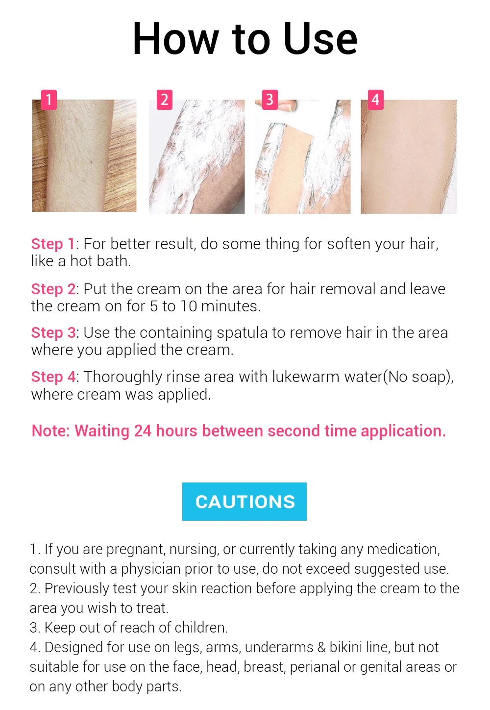 4. Предназначен для использования на ногах, руках, подмышек и линии бикини, но не подходит для использования на лице, голове, груди, перианальной или половой области или на любых других частях тела.