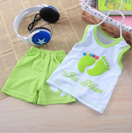 Летний костюм из 2 предметов комплект одежды для малышей, детский жилет с героями мультфильмов, комплект одежды, хлопковые спортивные футболки без рукавов шорты для малышей Лидер продаж, новинка