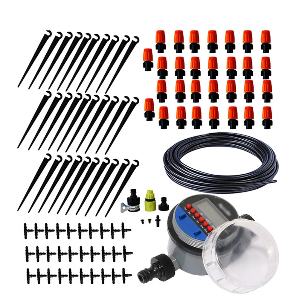 * В том числе: 1*25 м ПВХ шланг + 30 * кронштейны + 30 * оранжевые распылительные насадки + 30 * трехходовые разъемы + 2 * наконечники шланга + 1 * Разъем + 1 * шланг для душа аксессуар + 1 * шланг